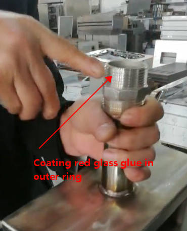 3. Su ısıtma tankını deliğe koyduğunuzda, halka içine kırmızı bir cam tutkal ekleyin ve ardından sıkıca vidalayın.